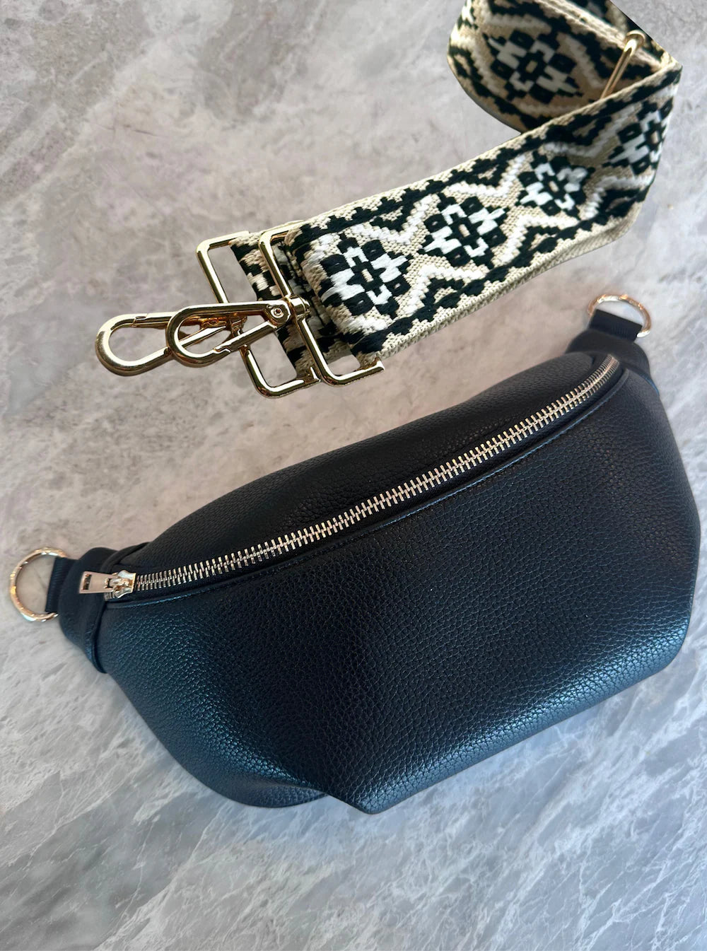This oversized crossbody bag is great for trips and fits a bit more than our smaller-size bag. It has one internal zipped pocket as well.