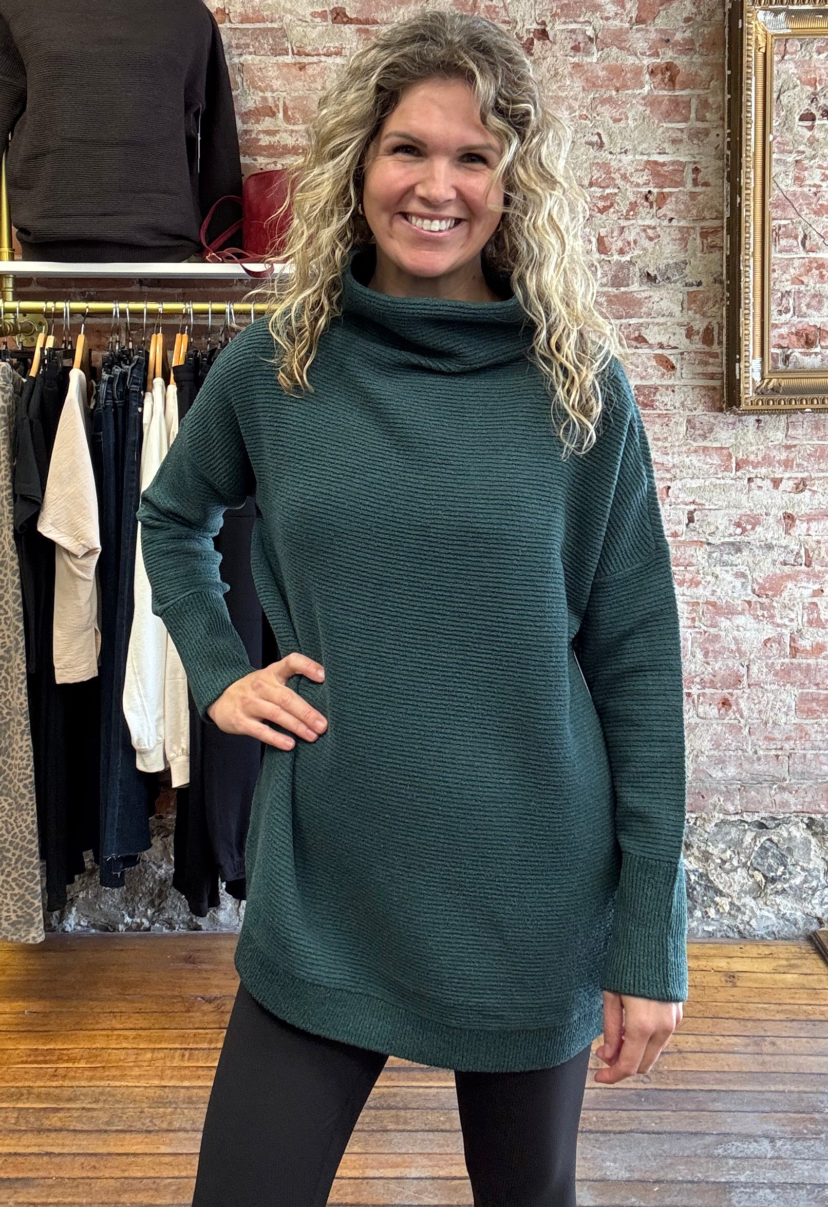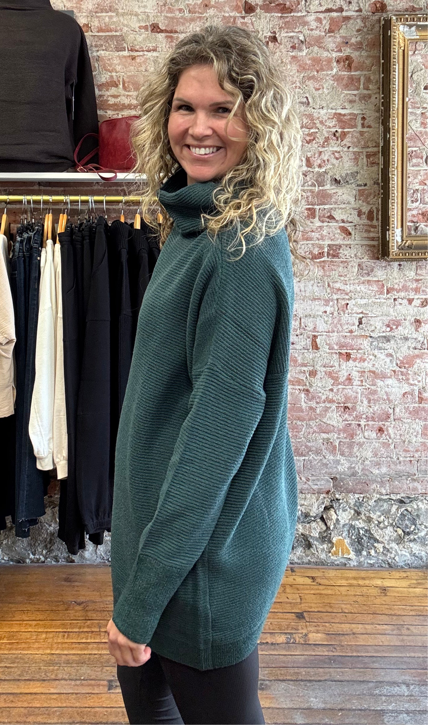 A long cozy sweater that wraps you in warmth featuring a relaxed, cozy fabric and a draped silhouette that falls below the hips-perfect for layering on chilly days. Colour-Green